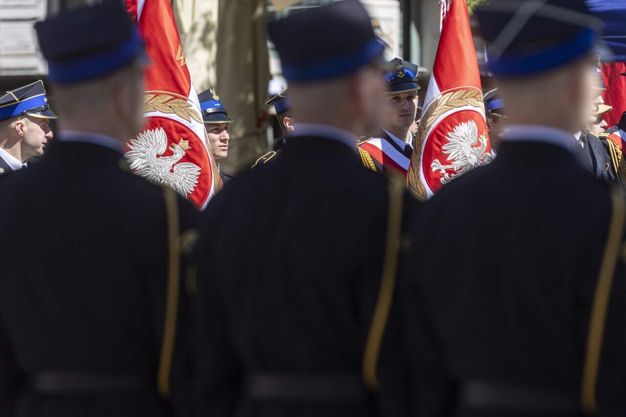 Gdańsk. Na Długim Targu odbył się uroczysty apel z okazji Wojewódzkich Obchodów Dnia Strażaka. W uroczystościach udział wzięli Wojewoda Pomorska Beata Rutkiewicz, Wicemarszałek woj. pomorskiego Leszek Bonna oraz Piotr Borawski, Z-ca Prezydenta ds. mobilności i bezpieczeństwa
