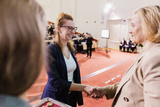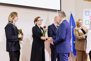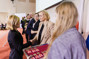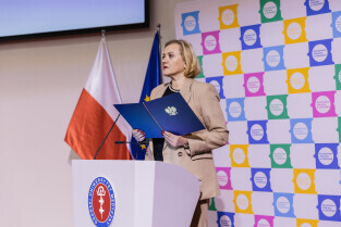 Gdańsk. Wojewódzkie uroczystości z okazji Dnia Edukacji Narodowej. Nz. Prezydent Gdańska Aleksandra Dulkiewicz