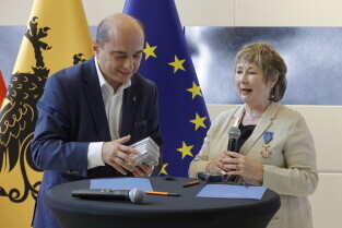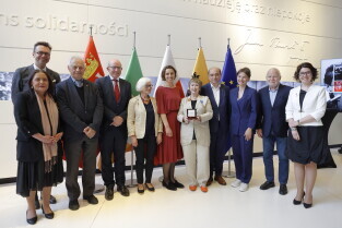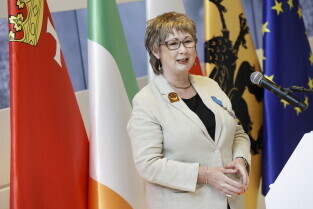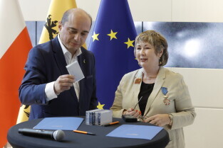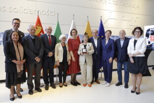 Gdańsk. Wręczenie Medalu Wdzięczności dr. Jacqueline Hayden, irlandzkiej dziennikarki i naukowczyni.