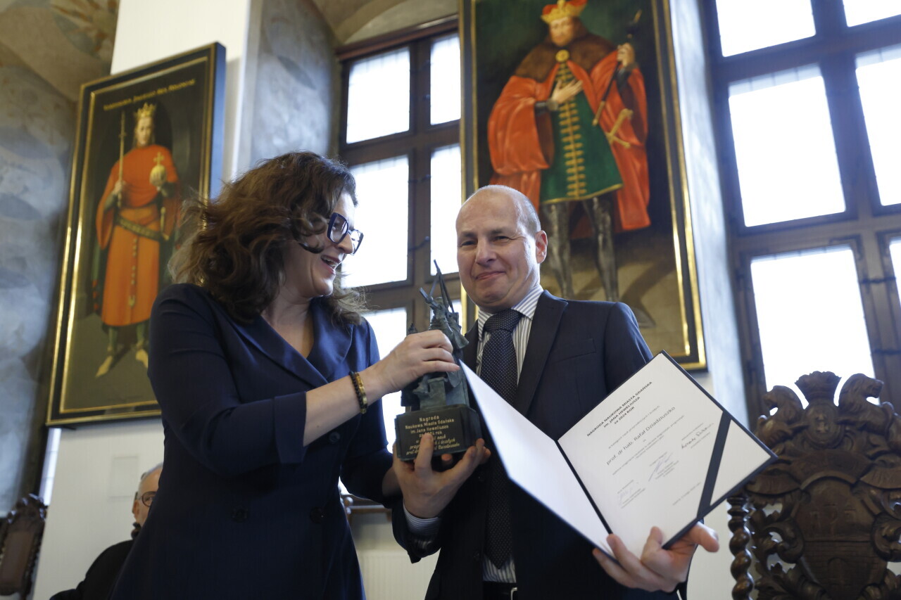 Gdańsk. Wręczenie Nagrody Naukowej Miasta Gdańska im. Jana Heweliusza.Laureatami nagrody zostali, prof.dr hab Rafał Dziadziuszko i prof.dr hab Tomasz Szkudlarek.