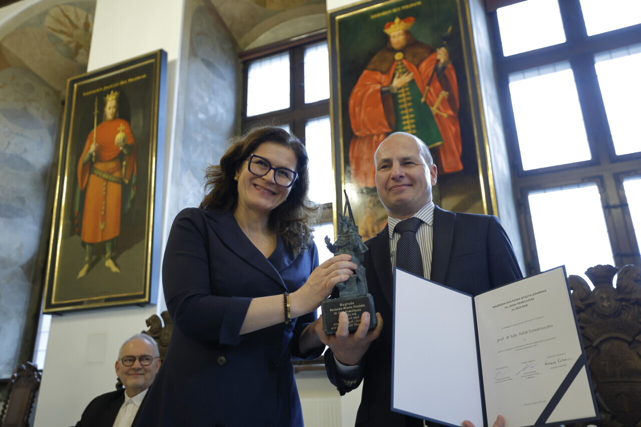 Gdańsk. Wręczenie Nagrody Naukowej Miasta Gdańska im. Jana Heweliusza.Laureatami nagrody zostali, prof.dr hab Rafał Dziadziuszko i prof.dr hab Tomasz Szkudlarek.