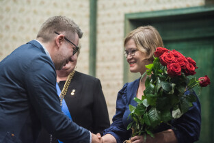 Gdańsk, Filharmonia Bałtycka. Wręczenie Orderu Uśmiechu Annie Czerwińskiej-Rydel (Nz)