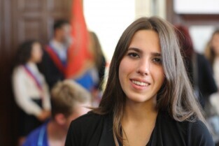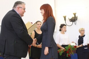 Gdańsk III LO. Wręczenie dyplomów z rąk Wiceprezydenta Gdańska Piotra Kowalczuka beneficjentom programu stypendialnego im. Fahrenheita. Nz Stypendystka Ewa Szwabowicz.