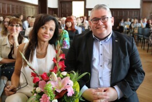 Gdańsk III LO. Wręczenie dyplomów z rąk Wiceprezydenta Gdańska Piotra Kowalczuka beneficjentom programu stypendialnego im. Fahrenheita. Nz Nz Żaneta Geryk-Radna Gdańska i Wiceprezydent Gdańska Piotr Kowalczuk.