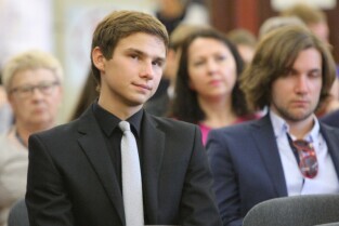 Gdańsk III LO. Wręczenie dyplomów z rąk Wiceprezydenta Gdańska Piotra Kowalczuka beneficjentom programu stypendialnego im. Fahrenheita. Nz Wiceprezydent Gdańska Piotr Kowalczuk.