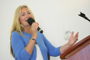 Gdańsk III LO. Wręczenie dyplomów z rąk Wiceprezydenta Gdańska Piotra Kowalczuka beneficjentom programu stypendialnego im. Fahrenheita. Nz Dyrektor Bożena Ordak. (L)