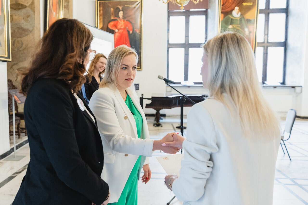 Gdańsk, Wielka Sala Wety. Wręczenie dotacji na ratowanie zabytków. W spotkaniu wzięli udział, Aleksandra Dulkiewicz – Prezydent Miasta Gdańska, Piotr Grzelak – Zastępca Prezydenta ds. zrównoważonego rozwoju, Anna Golędzinowska – Radna Miasta Gdańska, Krystyna Czerniewska – Radna Miasta Gdańska, Maximilian Kieturakis – Radny Miasta Gdańska, przewodniczący Komisji Kultury, członek komisji oceniającej wnioski