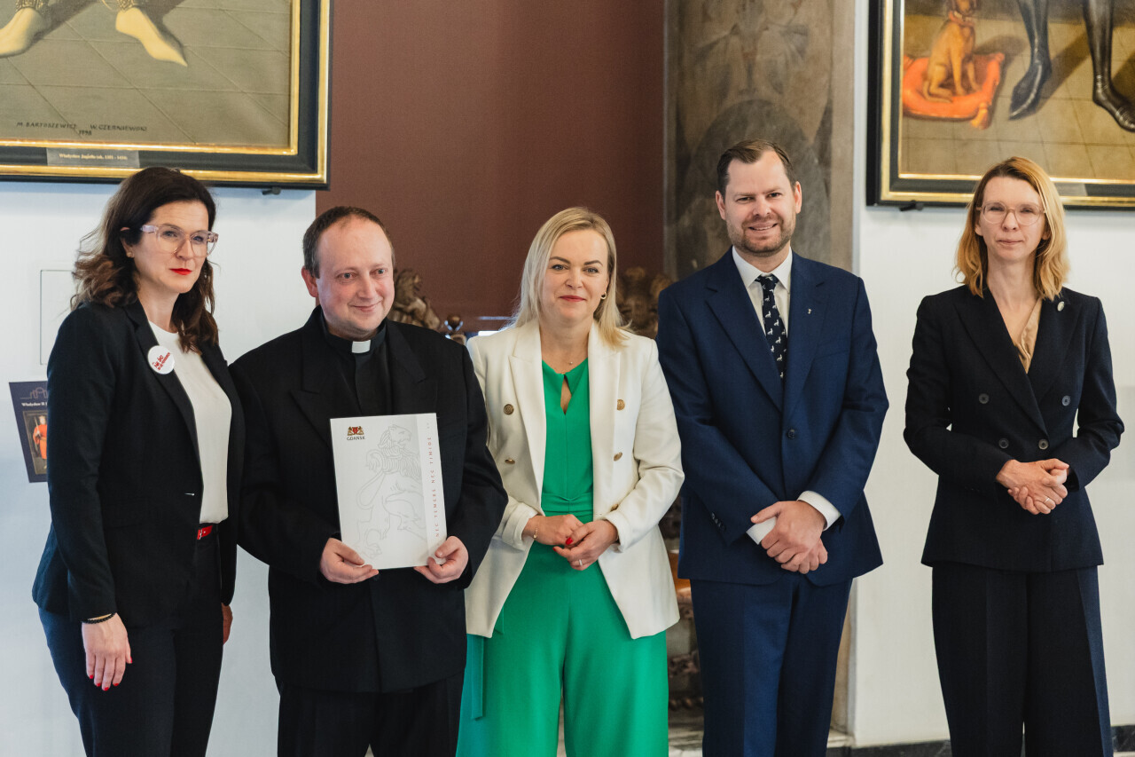 Gdańsk, Wielka Sala Wety. Wręczenie dotacji na ratowanie zabytków. W spotkaniu wzięli udział, Aleksandra Dulkiewicz – Prezydent Miasta Gdańska, Piotr Grzelak – Zastępca Prezydenta ds. zrównoważonego rozwoju, Anna Golędzinowska – Radna Miasta Gdańska, Krystyna Czerniewska – Radna Miasta Gdańska, Maximilian Kieturakis – Radny Miasta Gdańska, przewodniczący Komisji Kultury, członek komisji oceniającej wnioski