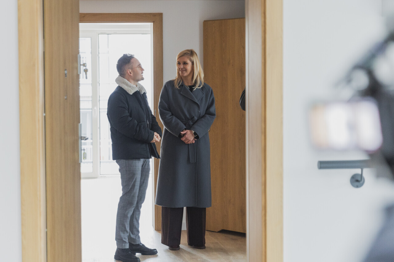 Gdańsk. Wręczenie kluczy do mieszkań w budynkach przy ulicy Ogińskiego. Klucze wręczyła prezydent Aleksandra Dulkiewicz, a towarzyszyć jej będzie Emilia Lodzińska, zastępczyni prezydent Gdańska ds. rozwoju przestrzennego i mieszkalnictwa.
