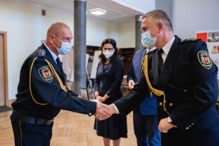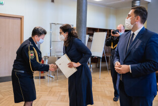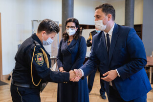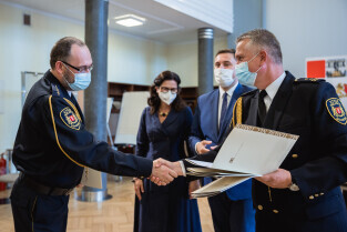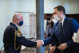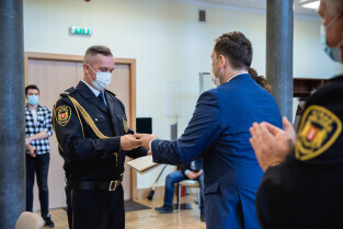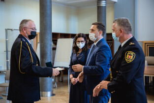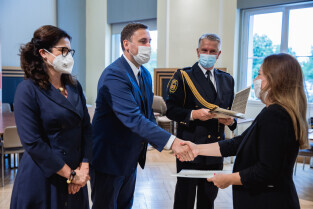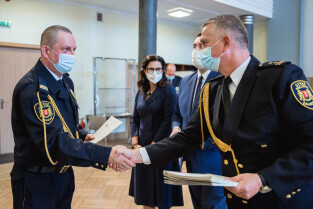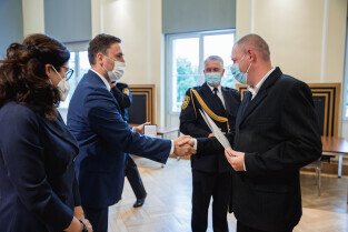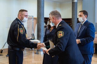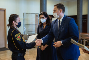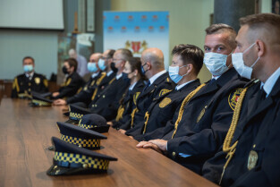 Gdańsk, UMG ul. Nowe Ogrody. Wręczenie nagród dla Straży Miejskiej z Dnia Strażnika Miejskiego i Gminnego (+ 30- lecie powstania SM)