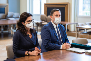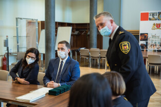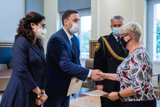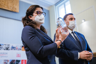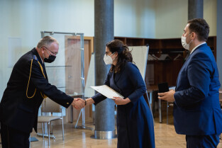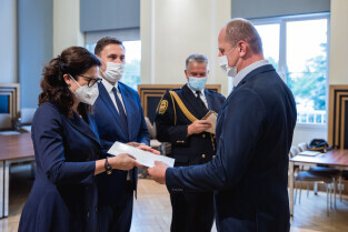 Gdańsk, UMG ul. Nowe Ogrody. Wręczenie nagród dla Straży Miejskiej z Dnia Strażnika Miejskiego i Gminnego (+ 30- lecie powstania SM). Nz. Prezydent Gdańska Aleksandra Dulkiewicz i Wiceprezydent Gdańska Piotr Borawski