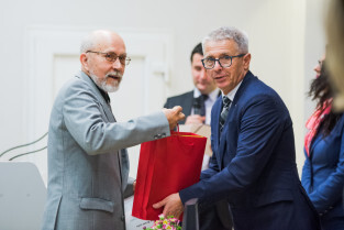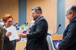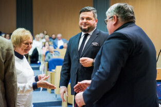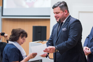 Gdańsk, Urząd Marszałkowski. Wręczenie nagród laureatom Olimpiady "Senior Obywatel". Nz. Wiceprezydent Gdańska Piotr Kowalczuk