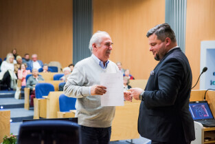 Gdańsk, Urząd Marszałkowski. Wręczenie nagród laureatom Olimpiady "Senior Obywatel". Nz. Radny Anderzej Kowalczys