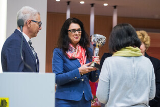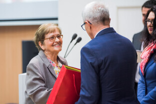 Gdańsk, Urząd Marszałkowski. Wręczenie nagród laureatom Olimpiady "Senior Obywatel". Nz. Teresa Malinowska