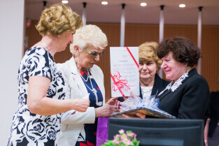 Gdańsk, Urząd Marszałkowski. Wręczenie nagród laureatom Olimpiady "Senior Obywatel". Nz. Barbara Badowska-Średniawa-Przewodnicząca Prezydium DP-OPS
