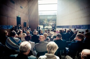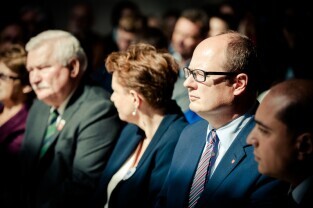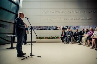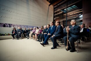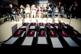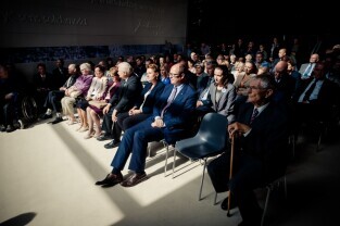 Gdańsk, Europejskie Centrum Solidarności. Wręczenie odznak honorowych „Zasłużony dla Kultury Polskiej” budowniczym pomnika Poległych Stoczniowców 1970 w Gdańsku.