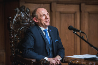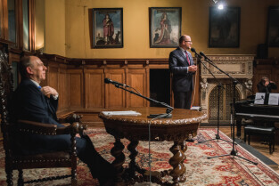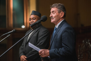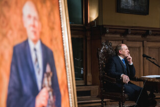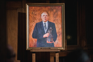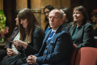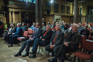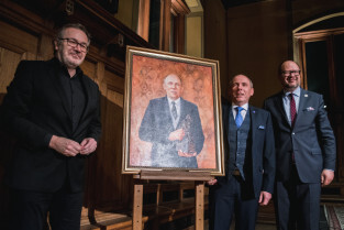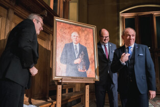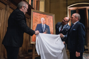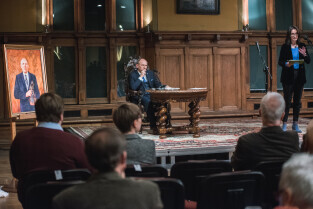 Gdańsk, ul. Korzenna. Wręczenie portretu laureata nagrody naukowej im. Jana Heweliusza. Nz. Prof. Cezary Obracht-Prondzyński