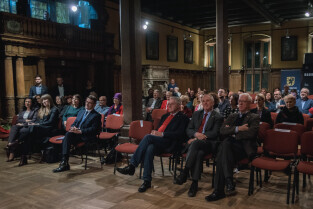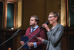 Gdańsk, ul. Korzenna. Wręczenie portretu laureata nagrody naukowej im. Jana Heweliusza. Nz. dr Agata Bachórz i dr Krzysztof Stachura
