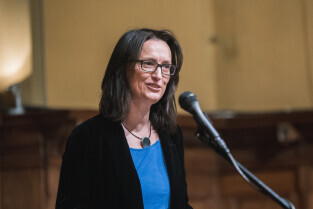 Gdańsk, ul. Korzenna. Wręczenie portretu laureata nagrody naukowej im. Jana Heweliusza. Nz. dr Miłosława Borzyszkowska-Szewczyk