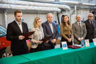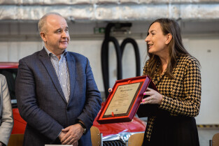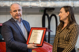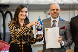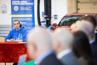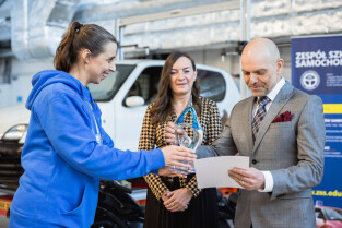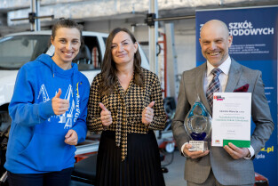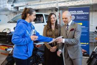 Gdańsk, Zespół Szkół Samochodowych. Wręczenie statuetki pracodawca przyjazny gdańskiej szkole zawodowej. Nagrodę główną wręczyła Monika Chabior, zastępczyni prezydenta Gdańska ds. rozwoju społecznego i równego traktowania