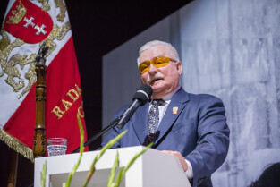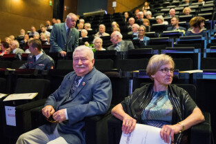 Gdańsk, ECS. Podczas uroczystej sesji Rady Miasta Gdańska wręczono tytułu Honorowego Obywatela Miasta Gdańska Pani prof. Joannie Muszkowskiej-Penson. Nz. Prezydent Lech Wałęsa