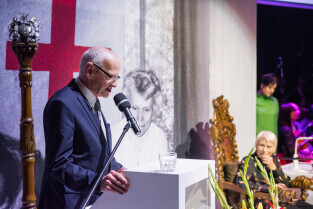 Gdańsk, ECS. Podczas uroczystej sesji Rady Miasta Gdańska wręczono tytułu Honorowego Obywatela Miasta Gdańska Pani prof. Joannie Muszkowskiej-Penson. Nz. Basil Kerski Dyrektor ECS
