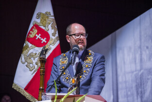 Gdańsk, ECS. Podczas uroczystej sesji Rady Miasta Gdańska wręczono tytułu Honorowego Obywatela Miasta Gdańska Pani prof. Joannie Muszkowskiej-Penson. Nz. Prezydent Gdańska Paweł Adamowicz