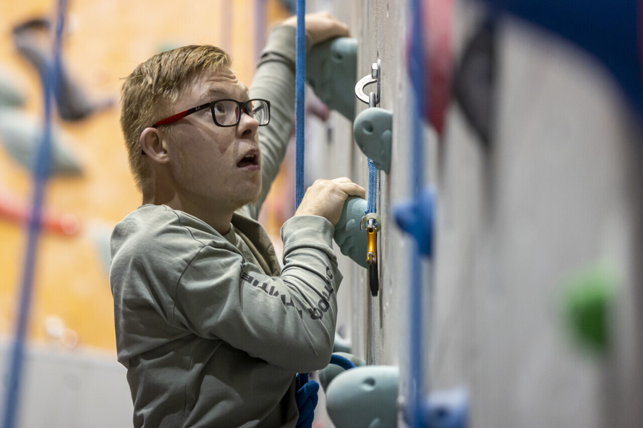 Gdańsk. Na ścianece wspinaczkowej w kompleksie Alchemia w Oliwie odbył się I Gdański Festiwal Wspinanie Bez Barier dla Osób z Niepełnosprawnością i Zaburzeniami Rozwoju