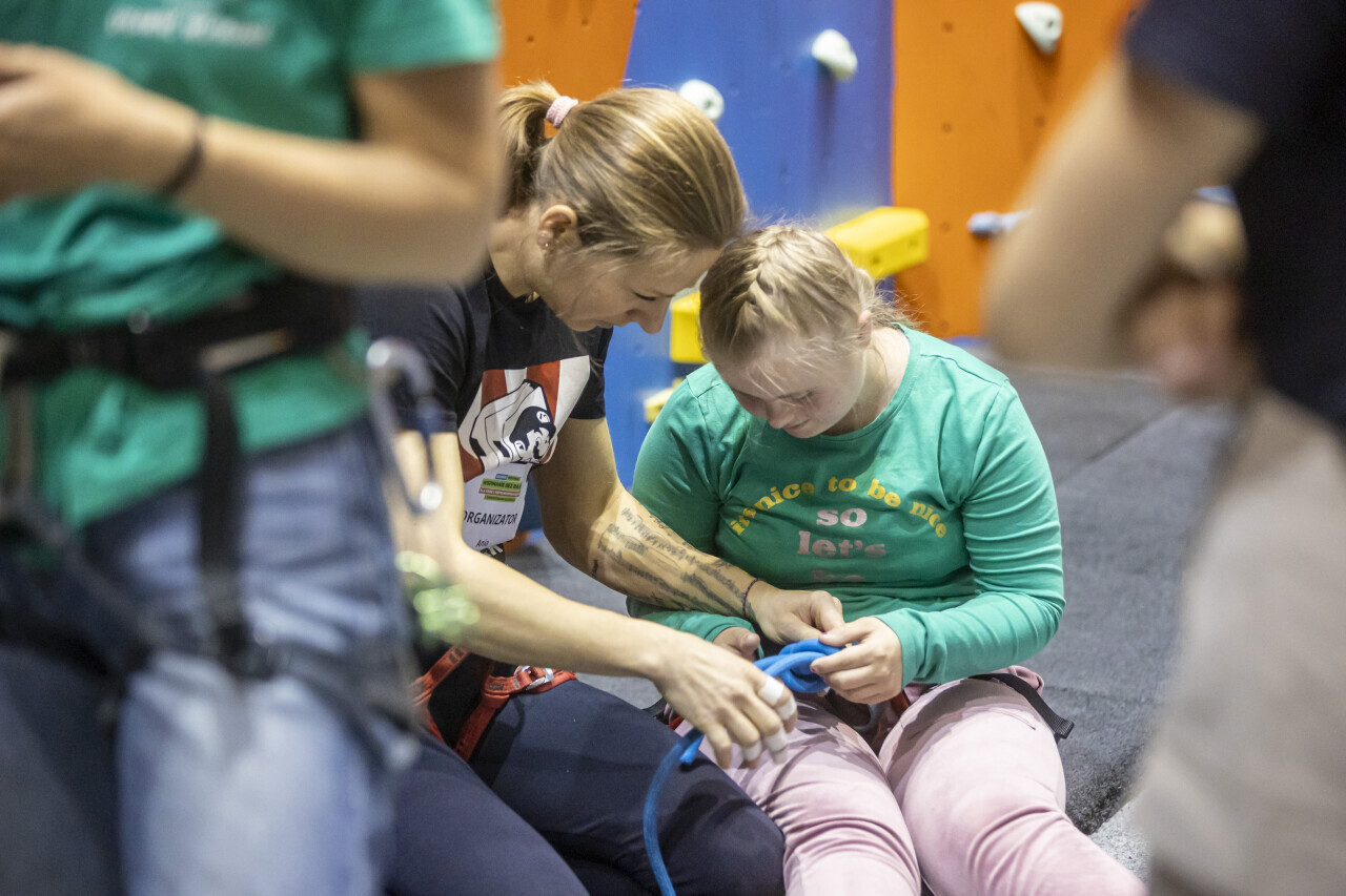Gdańsk. Na ścianece wspinaczkowej w kompleksie Alchemia w Oliwie odbył się I Gdański Festiwal Wspinanie Bez Barier dla Osób z Niepełnosprawnością i Zaburzeniami Rozwoju