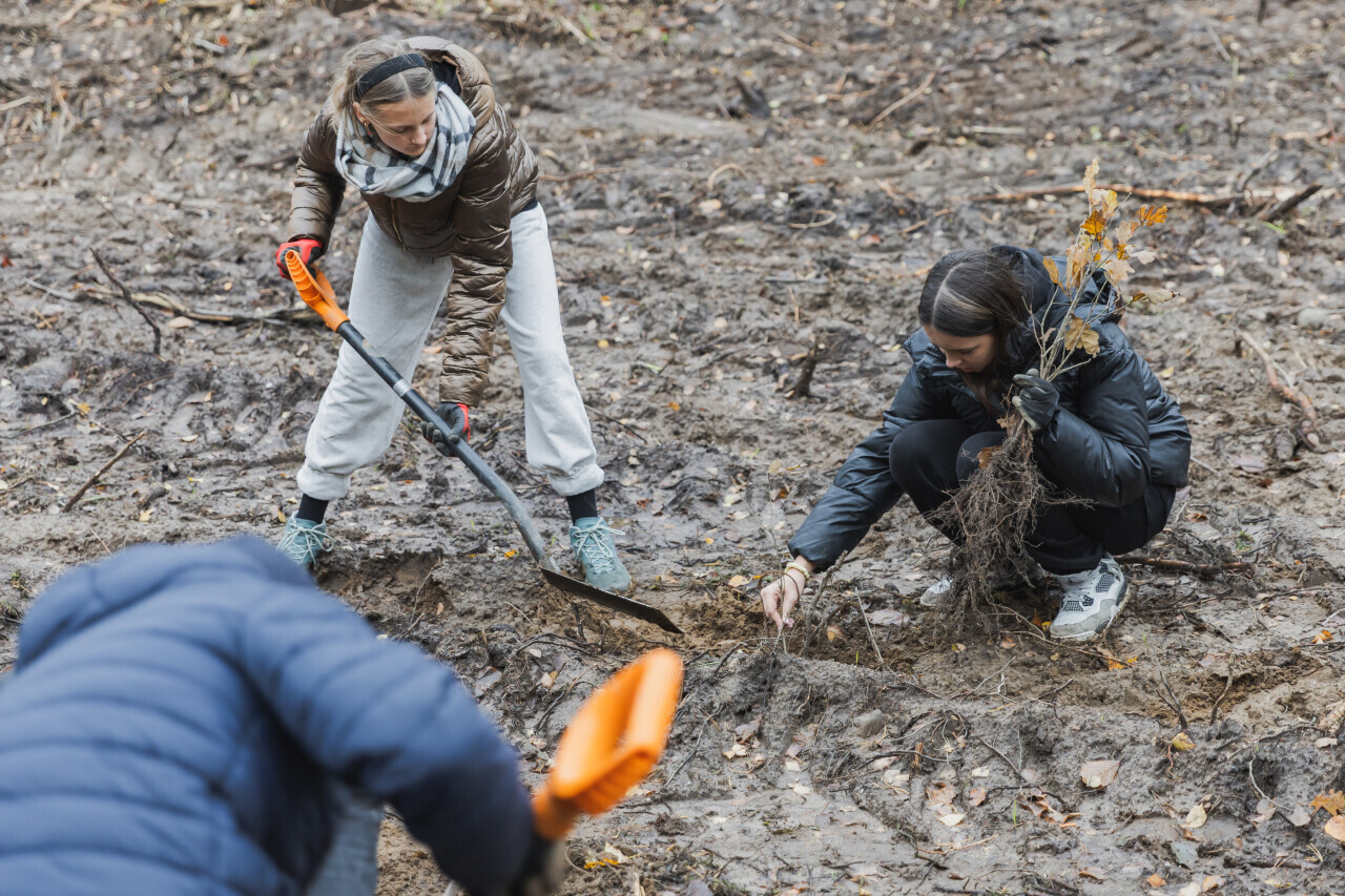 Gdańsk, ul. Astronautów. Wspólne sadzenie drzew na Matarni. W akcji brały udział uczennice i uczniowie gdańskich szkół.