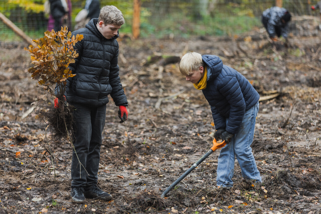 Gdańsk, ul. Astronautów. Wspólne sadzenie drzew na Matarni. W akcji brały udział uczennice i uczniowie gdańskich szkół.
