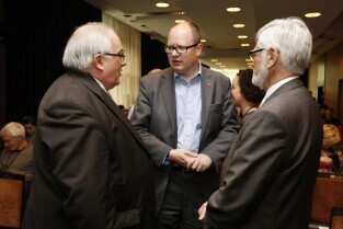 Konferencja "Współpraca partnerska narzędziem aktywnego obywatelstwa". Debata na temat kształtu programu "Europa dla Obywateli". Gdańsk, Hotel Mercure. Nz. od lewej: Dyrektor Biura Związku Miast Polskich Andrzej Porawski, Prezydent Gdańska Paweł Adamowicz, Przewodniczący Rady Miasta Gdyni dr Stanisław Szwabski