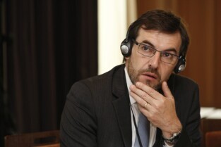 Konferencja "Współpraca partnerska narzędziem aktywnego obywatelstwa". Debata na temat kształtu programu "Europa dla Obywateli". Gdańsk, Hotel Mercure. Nz. Dyrektor Departamentu ds. Współpracy Bliźniaczej Francuskiej Sekcji Rady Gmin i Regionów Europy Philippe Tarrison
