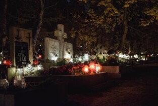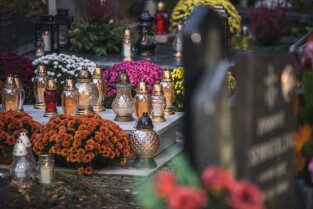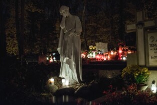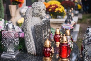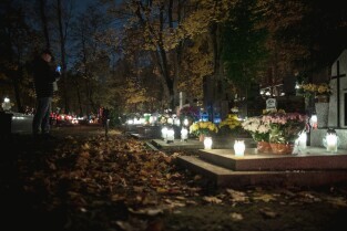 Gdańsk, Wszystkich Świętych. Gdańszczanie licznie odwiedzają cmentarze. Nz. Cmentarz Łostowicki