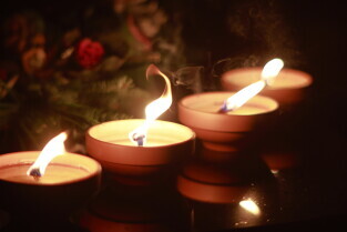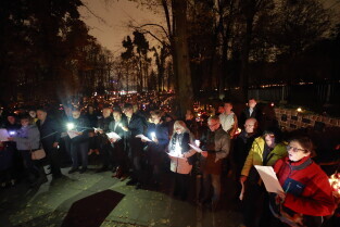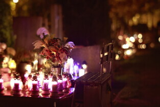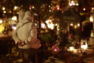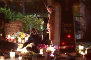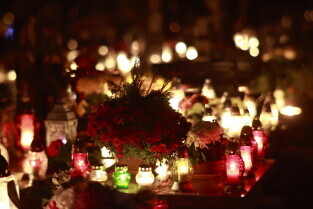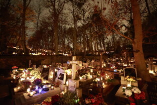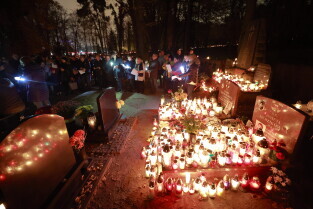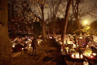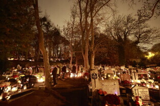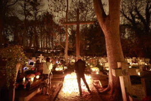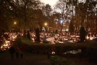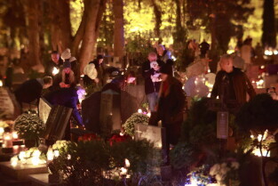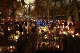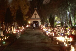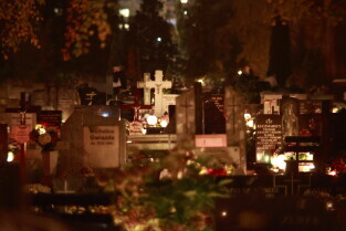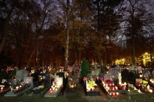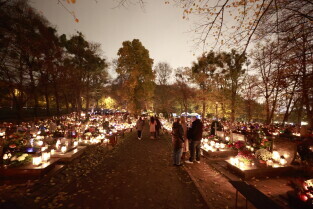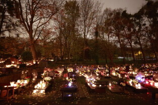 Gdańsk. Wszystkich Świętych, Gdańskie cmentarze po zmierzchu. Nz. Cmentarz Oliwski.