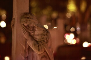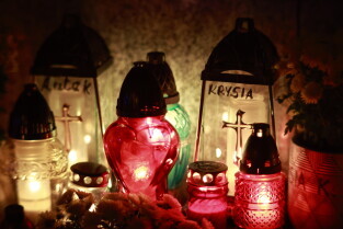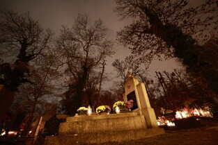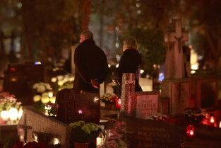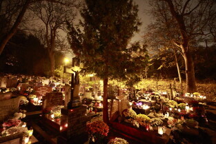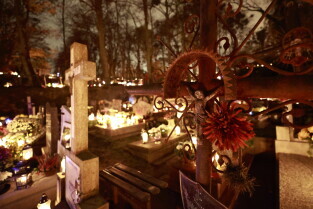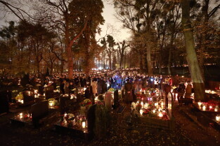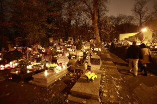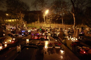 Gdańsk. Wszystkich Świętych, Gdańskie cmentarze po zmierzchu. Nz. Cmentarz Św. Ignacego.