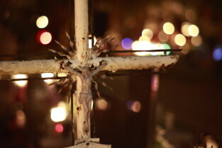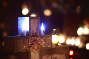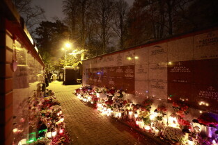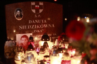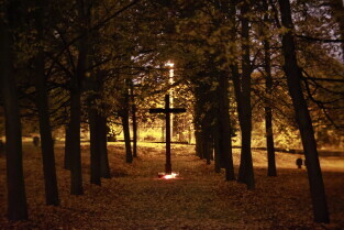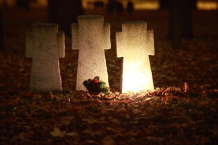 Gdańsk. Wszystkich Świętych, Gdańskie cmentarze po zmierzchu. Nz. Cmentarz Garnizonowy, grób Danuty Siedzikówny "Inki".