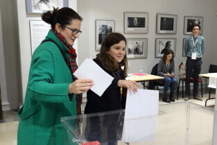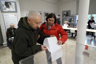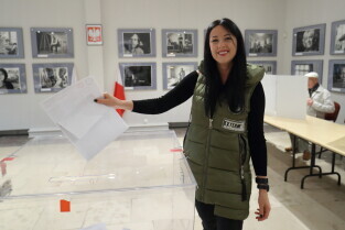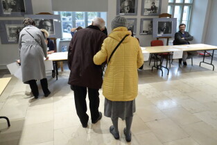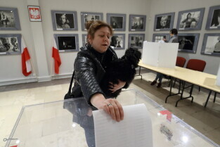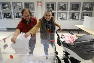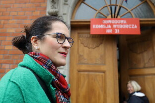 Gdańsk. Wybory parlamentarne, głosowanie w obwodowej komisji wyborczej nr 31.