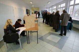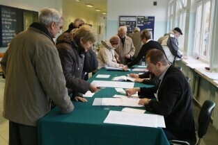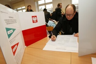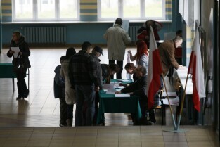 Wybory Samorządowe 2010. Lokal wyborczy w Zespole Szkół Łączności przy ul. Podwale Staromiejskie.