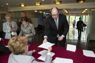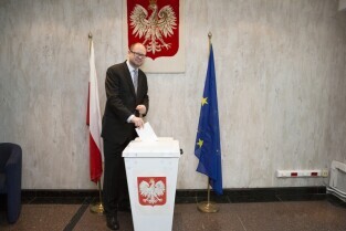 Konsulat Generalny RP w Hamburgu (Niemcy). Prezydent Gdańska Paweł Adamowicz głosuje w wyborach Prezydenta Rzeczypospolitej Polskiej