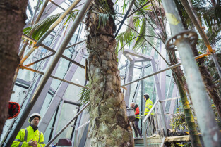 Gdańsk. Wycinka uschniętego daktylowca w Palmiarni w Oliwie