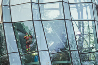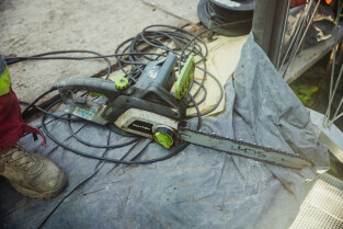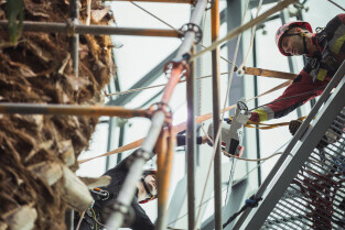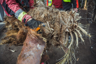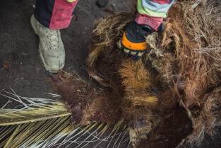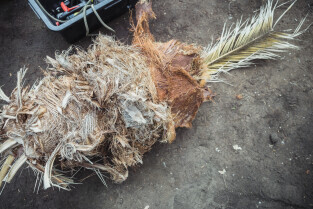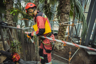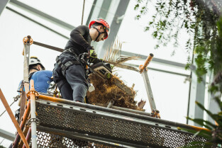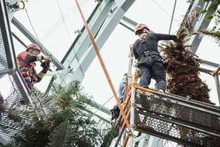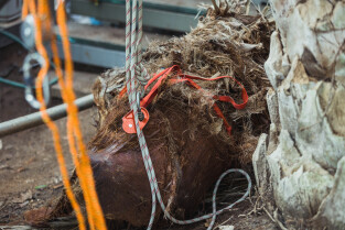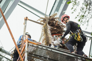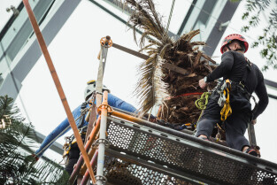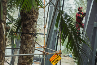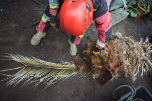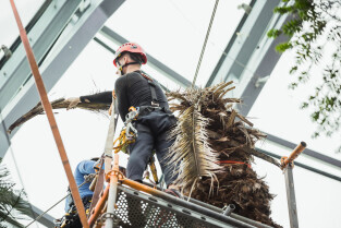 Wycinka uschniętego daktylowca w Palmiarni w Oliwie