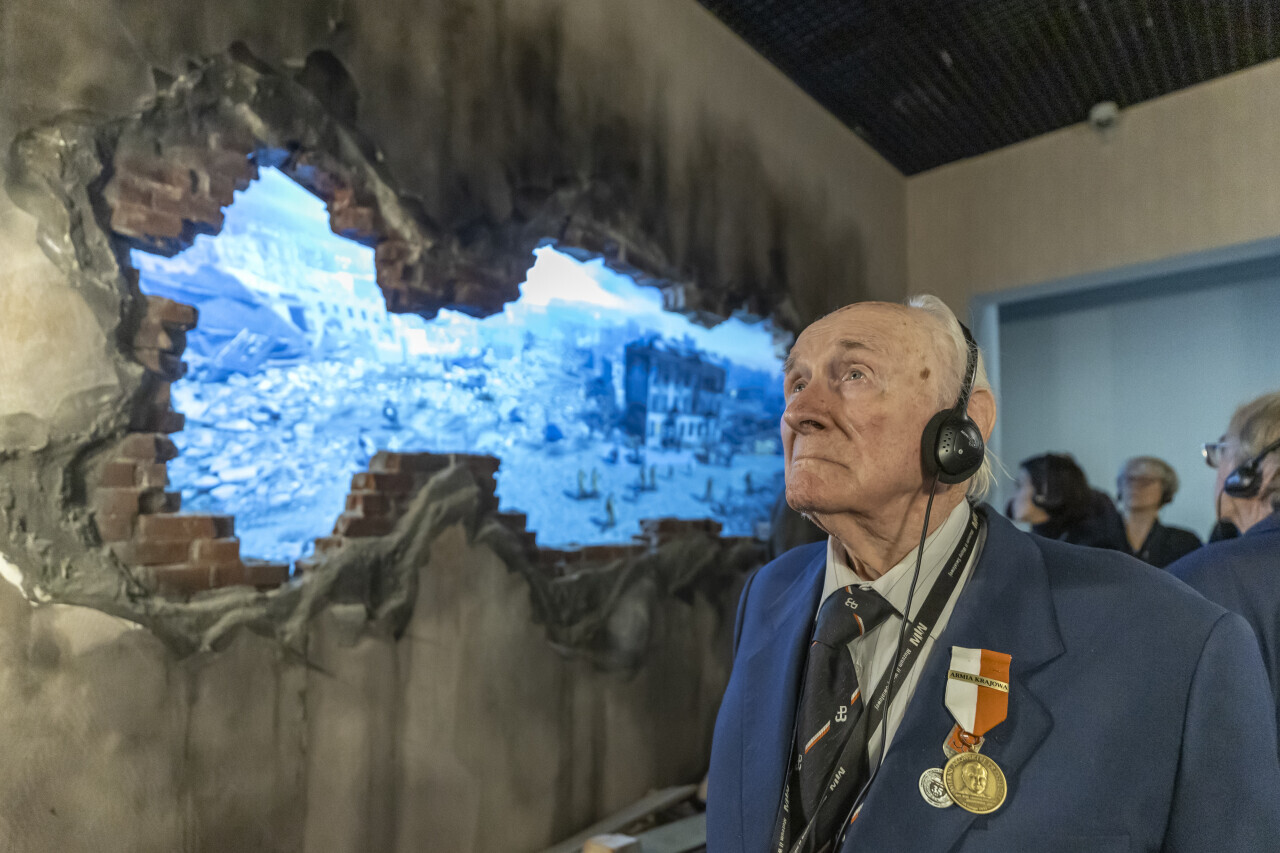 Gdańsk. Wyjazdowe spotkanie Zarządu Głównego Światowego Związku Żołnierzy AK. Nz. Zwiedzanie Wystawy Głównej Muzeum II Wojny Światowej.