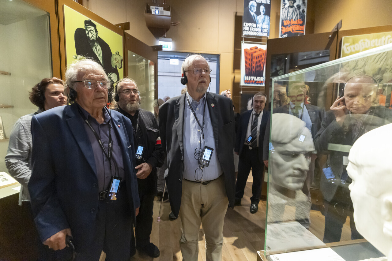 Gdańsk. Wyjazdowe spotkanie Zarządu Głównego Światowego Związku Żołnierzy AK. Nz. Zwiedzanie Wystawy Głównej Muzeum II Wojny Światowej.