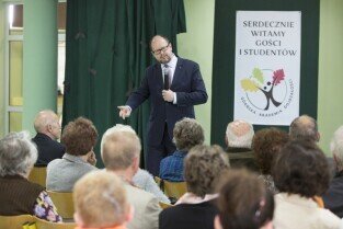 Gdańsk Osowa, ZSO nr 2. Wykład Prezydenta Gdańska Pawła Adamowicza pt. "Gdańsk jako wyzwanie" dla seniorów, słuchaczy Gdańskiej Akademii Dojrzałości