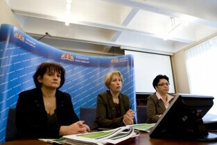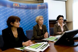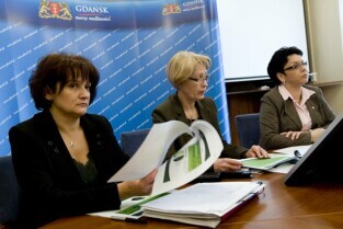 Gdańsk, Urząd Miejski. Konferencja prasowa dotycząca wykonania budżetu Miasta Gdańska w roku 2009. Nz. od lewej: Dyrektor Wydziału Finansowego Jolanta Ostaszewska, Skarbnik Miasta Gdańska Teresa Blacharska, Z-ca Dyrektora Wydziału Programów Rozwojowych Izabela Kuś