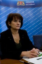 Gdańsk, Urząd Miejski. Konferencja prasowa dotycząca wykonania budżetu Miasta Gdańska w roku 2009. Nz. Skarbnik Miasta Gdańska Teresa Blacharska