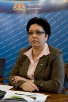 Gdańsk, Urząd Miejski. Konferencja prasowa dotycząca wykonania budżetu Miasta Gdańska w roku 2009. Nz. Z-ca Dyrektora Wydziału Programów Rozwojowych Izabela Kuś