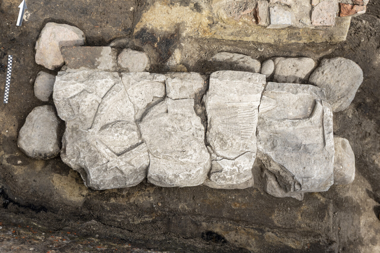 Gdańsk. Na ulicy Sukienniczej, w miejscu gdzie do niedawna działała lodziarnia "Miś" trwają badania archeologiczne. W trakcie prac odkryto resztki pierwszego drewnianego kościoła w Gdańsku i otaczającego go cmentarza. Nz. Grób Rycerza