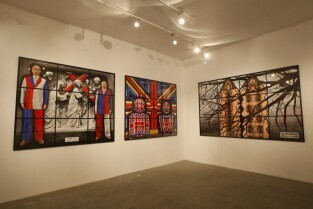 Wernisaż wystawy Gilbert & George - Jack Freak Pictures autorstwa. Gdańsk, Centrum Sztuki Współczesnej "Łaźnia".
